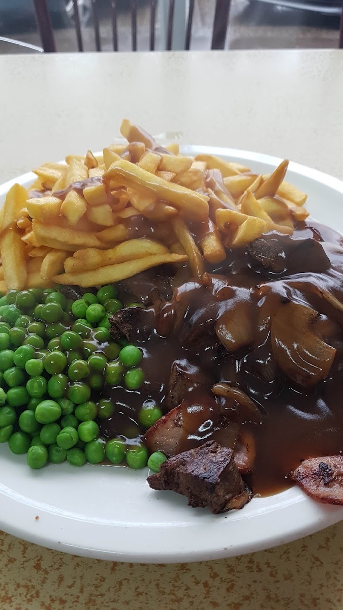 Lovely local cafe, nice atmosphere friendly staff. Decent portion sizes, inflation not hit this place yet. Foods served on hot plates, added bonus for those cold days. Food stays warmer for longer. Will be back. Cheers.